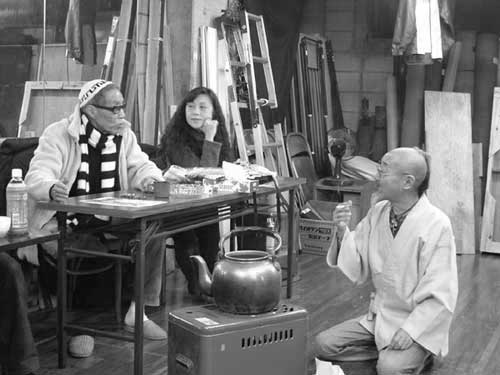 演出の藤田氏がチラシに寄せた言葉の中にある「古拙」という言葉を辞書で調べてきたが・・・と、鞄からメモ用紙を出す。「こういうふうにはできないんだよなぁ〜。」と悩める古澤さん。 いろいろと考え考え、稽古に励んでいるのだなぁ。 通し稽古に入る前に、タバコをほとんど一箱ぐらいふかしつづけている。 ←本人直筆のメモ |