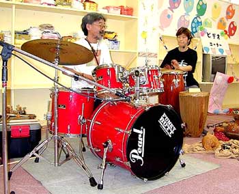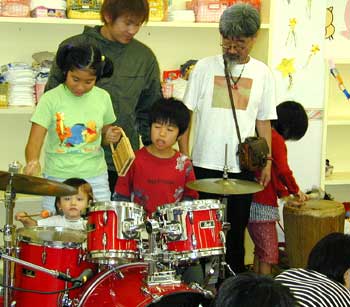ピノキオ幼児舎西八王子園主催 ![]() 古澤良治郎 & 藤ノ木みか 保育園のイベントで子供たちとリズムセッション 10月6日(日)、西八王子にある保育園ピノキオ幼児舎で行われた子供と父兄のための 「こどもたちを型にはめずのびのび育てていく」をモットーにした同幼児舎が、その一環として、子供達に「ほんものの“音”と“リズム”」に親しみ、楽しんでもらおう、という意図から企画されたイベントです。 |