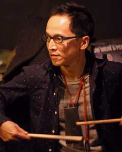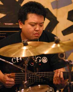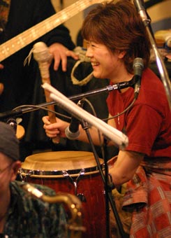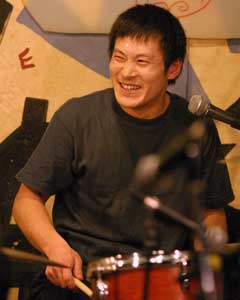 ![]() (ドラム・パーカッション) スケジュールOKの時は来てくれます。メンバーのようなスペシャルゲスト。すばらしいドラマーですが、「ね.」「ムクル」ではドラムは叩かず、主にジャンべ、バラフォンを演奏。 |