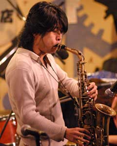 ![]() (サックス) 1973年生まれ。中学の頃よりアルト・サックスを始め、ジャズに興味を持ち、高校の頃より都内のジャムセッションに通う。高校3年生の時、浅草ジャズコンテストで金賞を受賞。1992年、早稲田高校卒業後バークリー音楽院に入学。在学中、ビル・ピアース、ジョージ・ガゾーンに師事。テオドロス・エィヴリー、ルーベン・ロジャース、アンソニー・ウォンジー、岡崎好朗各氏とセッションを重ねる。卒業時には、ウッド・ウインド・アチーヴメント賞を受賞。1996年春、ニューヨークに移り、ジェームス・ハート、ジェラルド・キャノン、エリック・マクファーソン、クラーレンス・ベン、アルベスター・ガーネット、井上陽介、中村健吾各氏と共演し様々なセッションを経験。 ●石崎忍HP● |