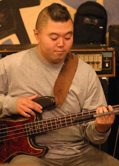 ![]() (ベース・うた) すばらしいベーシストですが、「ね.」ではパーカッション、うたも披露してくれます。オールマイティーなゲストです。 |