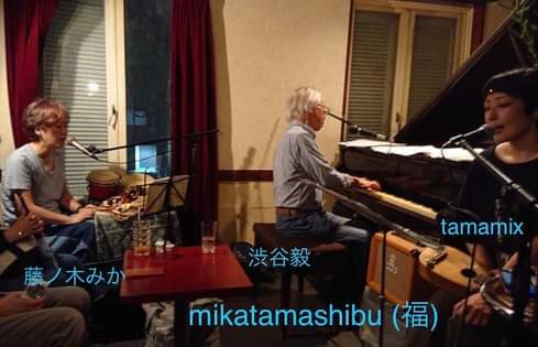 mikatamashibu (福) 渋谷毅(p,うた) tamamix(うた,ウクレレ) 藤ノ木みか (うた,perc) ![]() |
