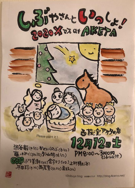 | sold out!! 12月12日(土) PM8時頃〜 ¥3000(1ドリンク付き) しぶやさんといっしょ! |