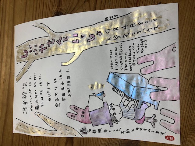 | 残念ながら延期です。 日程については 決まり次第お知らせします。 open19時 start19時半 ¥3000