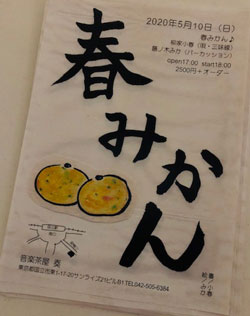 春みかん 柳家小春(三味線、唄) 藤ノ木みか(perc.、歌?) 柳家小春さんと藤ノ木みかの特別ユニット ユニット名だけ決まりました。夏みかんじゃなくて、春みかん。 |